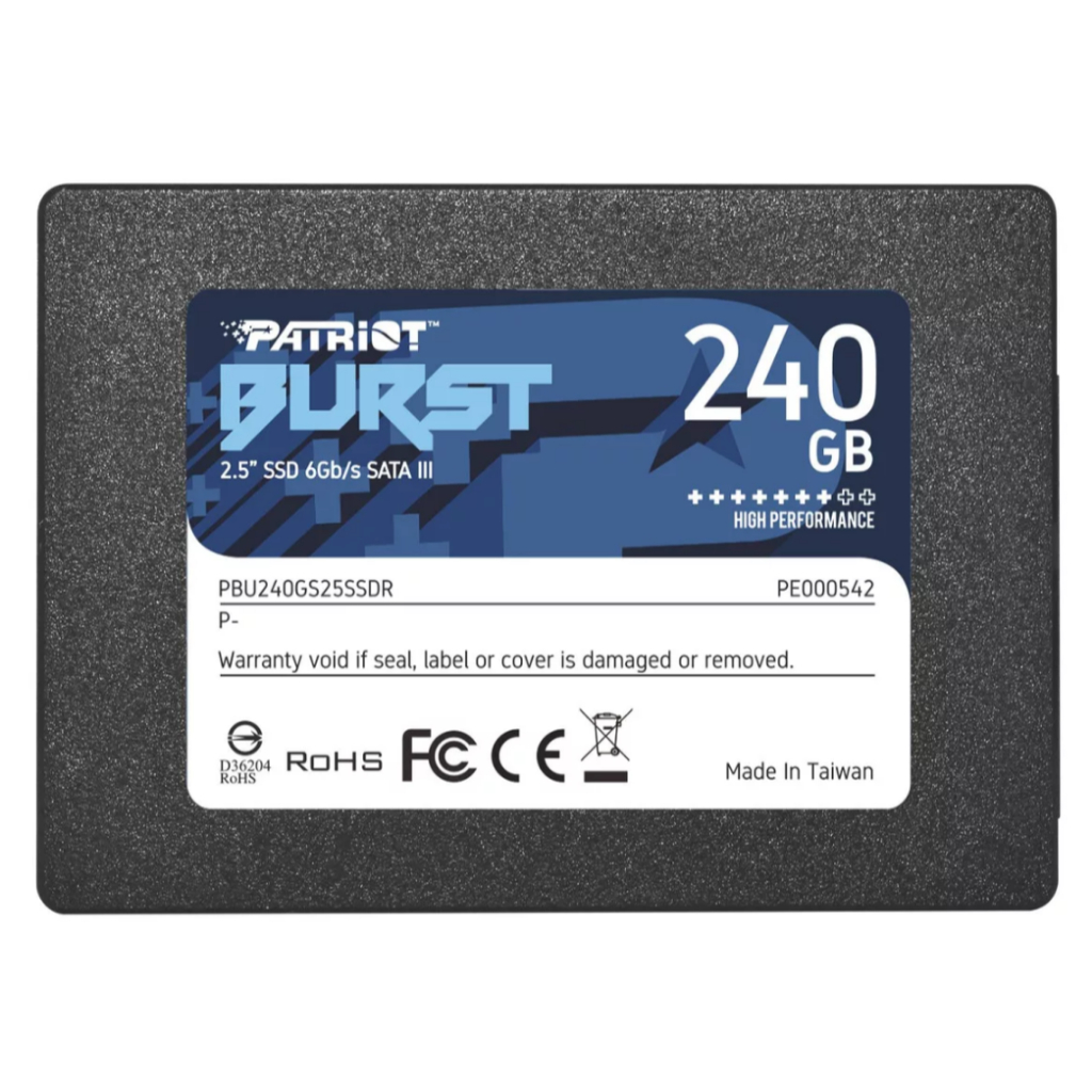 - SSD Patriot Burst Elite, 240GB, SATA III, Leitura 450MB/s, Gravação 320MB/s, 2.5 Polegadas - PBE240GS25SSDR